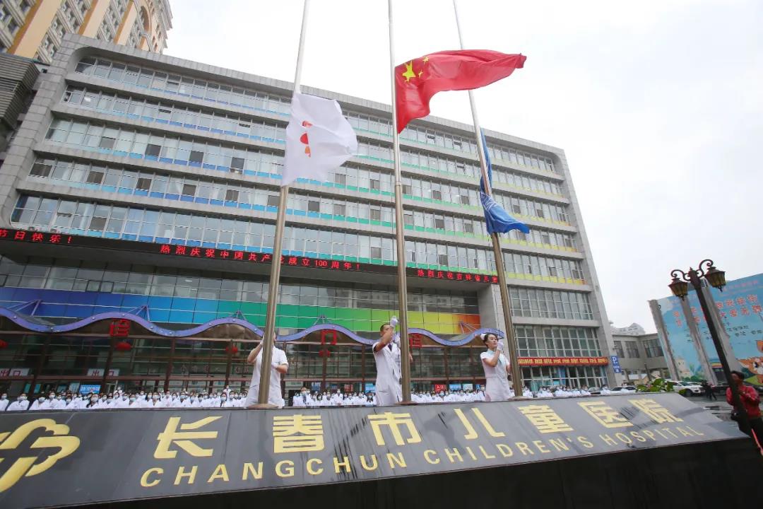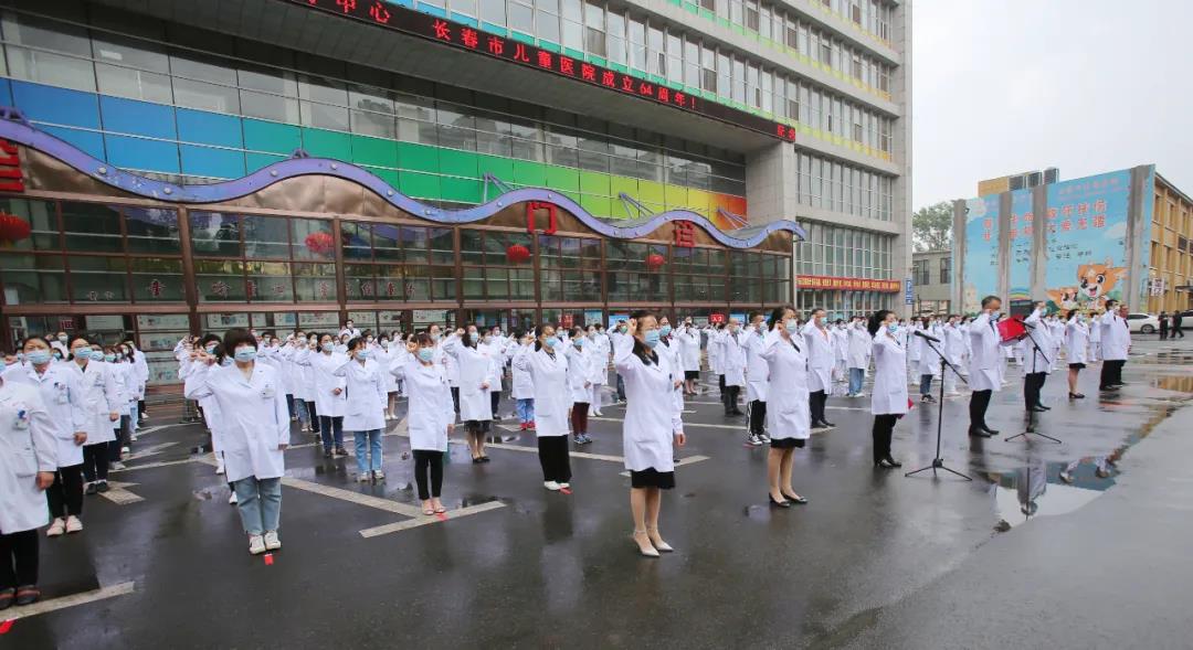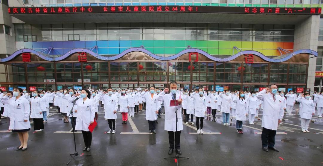 在党委书记、院长张延赤的带领下,全体向国旗庄严宣誓: 我志愿献身于儿童医疗保健事业,救死扶伤,解除病痛是我的天职,潜心钻研,修炼道德是我的使命。健康所系,性命相托,我要用精湛的技术镌刻医者的大爱,我要用仁爱之心服务于每一位患儿。誓做一名让党和人民满意的卫生人。