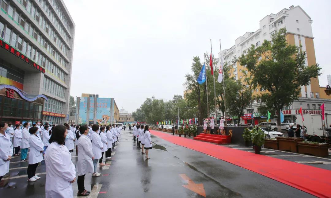 院领导班子及医务工作者参加了升旗宣誓仪式。
