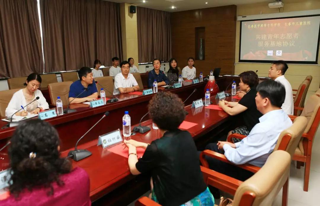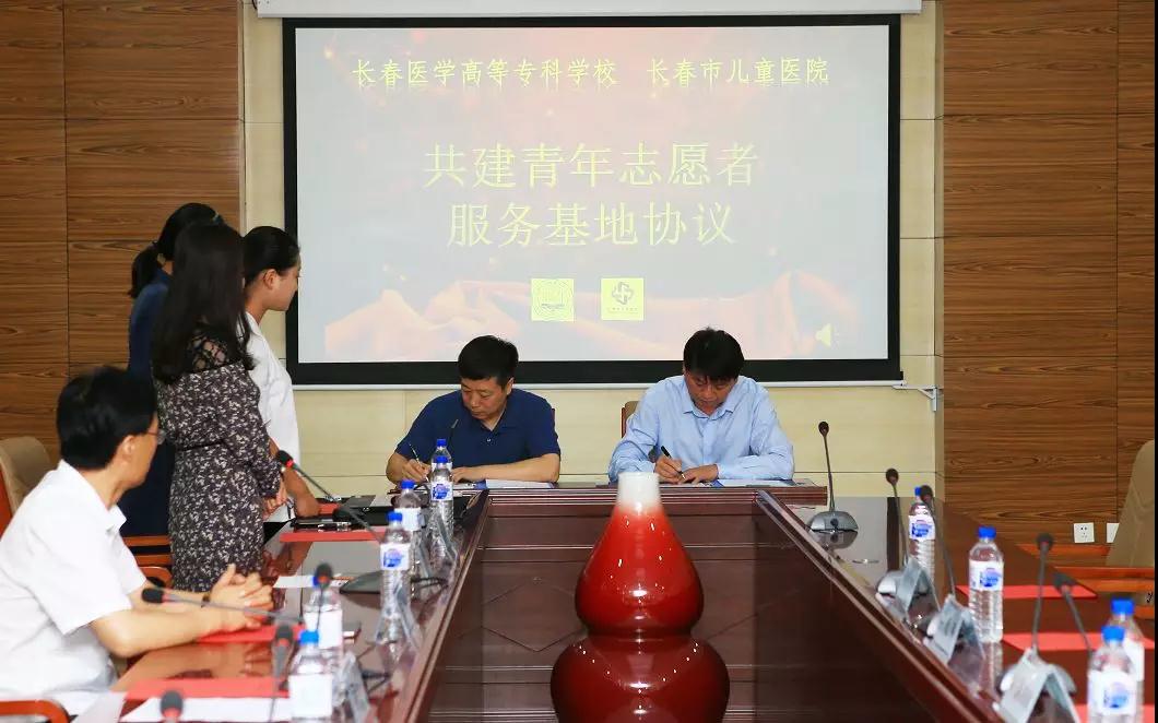 与长春医学高等专科学校(医高专)共建青年志愿者服务基地合作举行签约仪式。