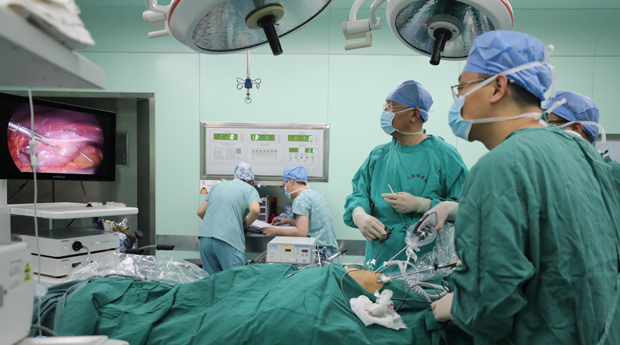 鉴于佳佳腹痛剧烈、存在感染,尽快手术、切除囊肿,是解除其病痛的最好办法。普外、新生儿外科主任崔钊说,手术首选腹腔镜下胆总管囊肿根治术。佳佳因术前存在感染,胆管与周围组织粘连较重,特别是与其后方的门静脉粘连紧密,如果手术剥离过程中导致门静脉破裂,将会存在引发大出血甚至危及生命的可能。这注定是一台风险巨大的手术。另外,腹腔镜下手术,存在空间小、分离时间长、胆肠吻合难度大等特点,这对于术者具有挑战性,要求术者要有更高超的技术水平。