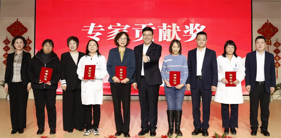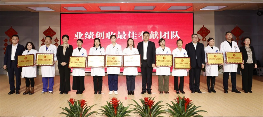 医院领导班子成员分别宣读了对2024年度“优秀教学团队”“优秀科研团队”“临床中药应用推广先进集体”“优秀共产党员”“专家贡献奖”“最佳窗口服务标兵”等进行表彰的决定,并为获表彰人员颁奖。