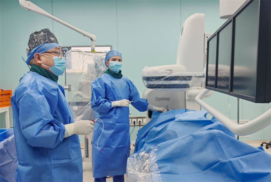 “此前的手术如同‘隔雾看花’,我们只能凭经验来判断病变血管的边界。而此次引进的数字减影血管造影(DSA),就如同为医生装上了‘透视眼’,不仅终末段细小的血管团都能立体呈现出来,还能实时观察药物扩散轨迹,帮助医生精确控制剂量,彻底覆盖病灶,真正实现了从‘经验治疗’到‘靶向治疗’的跨越。”陶永欣主任说。