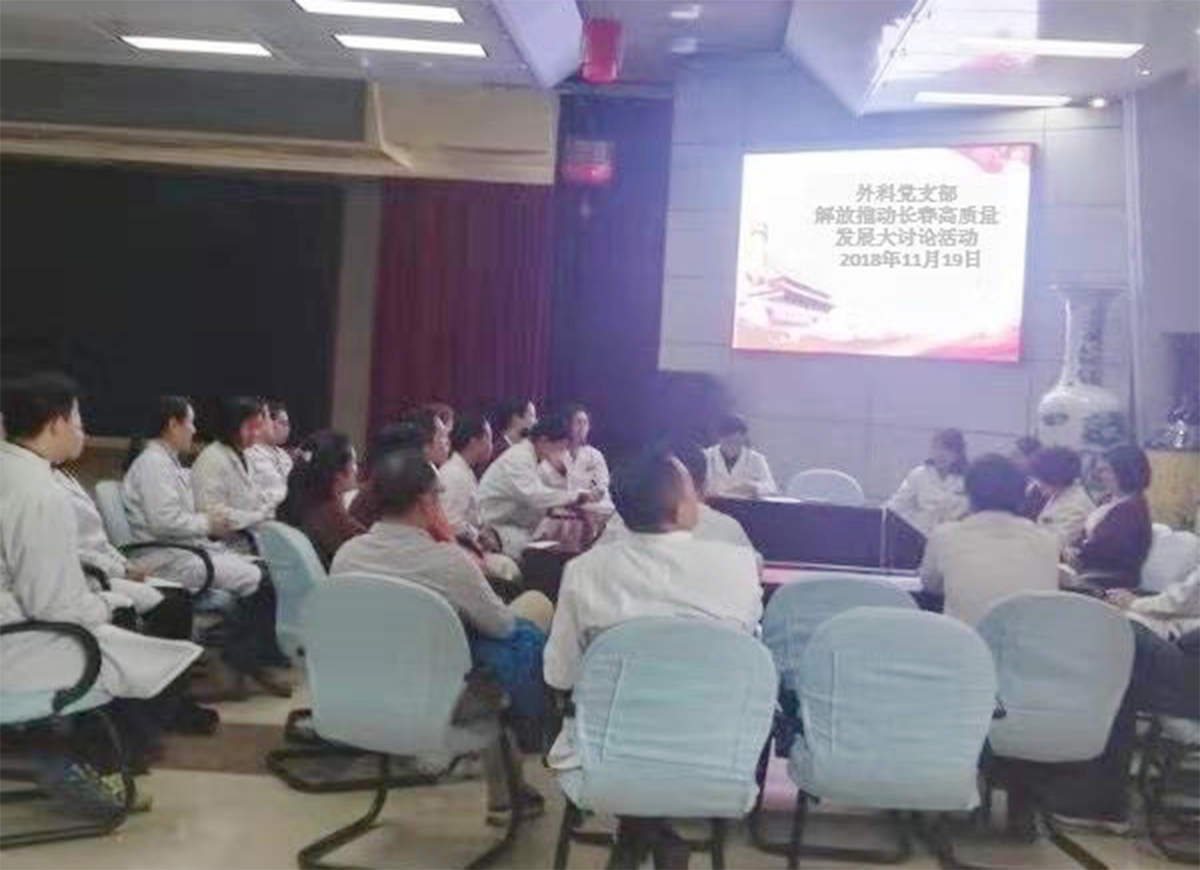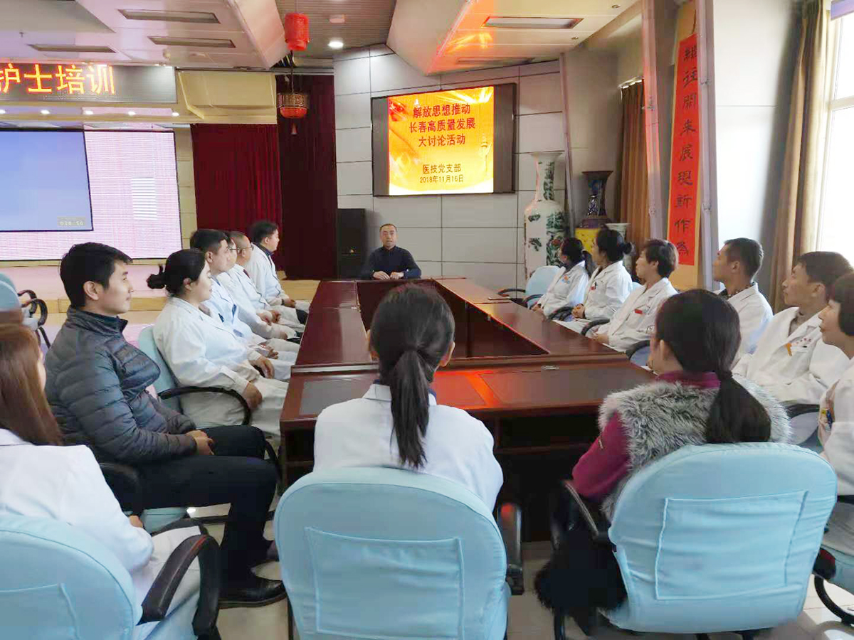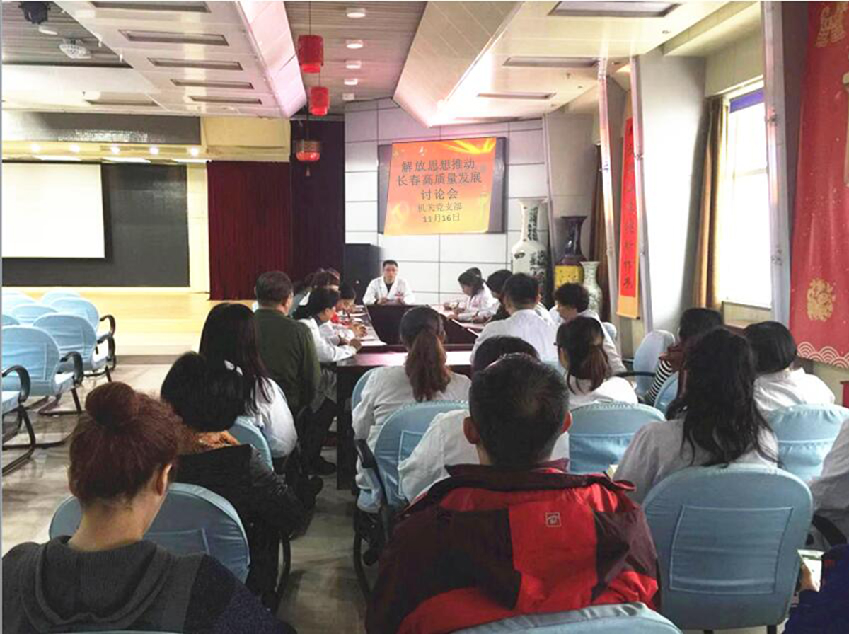 按照长春市委十三届五次全会精神《关于开展解放思想推动长春高质量发展大讨论的方案》、市卫计委及院党委的要求部署,11月15 日—— 11 月20日,六个党支部分别组织广大党员干部召开了“解放思想推动长春高质量发展”研讨会。