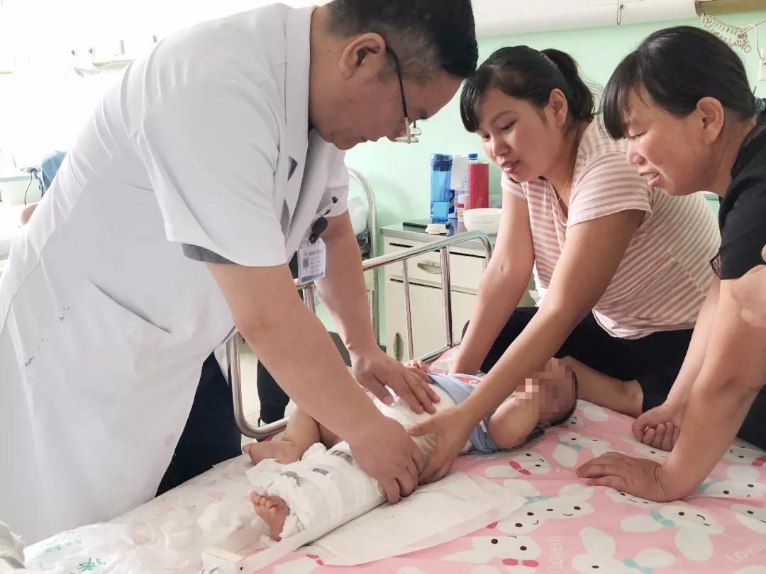 在医教部主任刘颖积极协调,二外科主任栾志勇妥善安排下,相关科室医务人员、床位等一切准备就绪,男宝由专人护送,到医院后直接收治住院,以最快的速度进入救治程序。骨泌尿烧伤外科副主任、主任医师杨宝刚说,经检查,男宝左腿股骨干骨折,鉴于男宝月龄太小,医院运用独有的治疗方法,为男宝进行牵引后髋人字石膏固定治疗,早期用石膏夹板儿结合牵引,中后期采取髋人字石膏固定。目前,男宝病情稳定,再过几天就可以出院了。