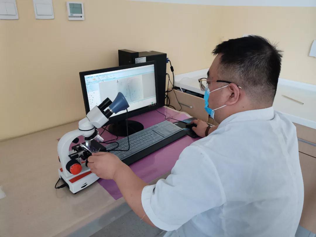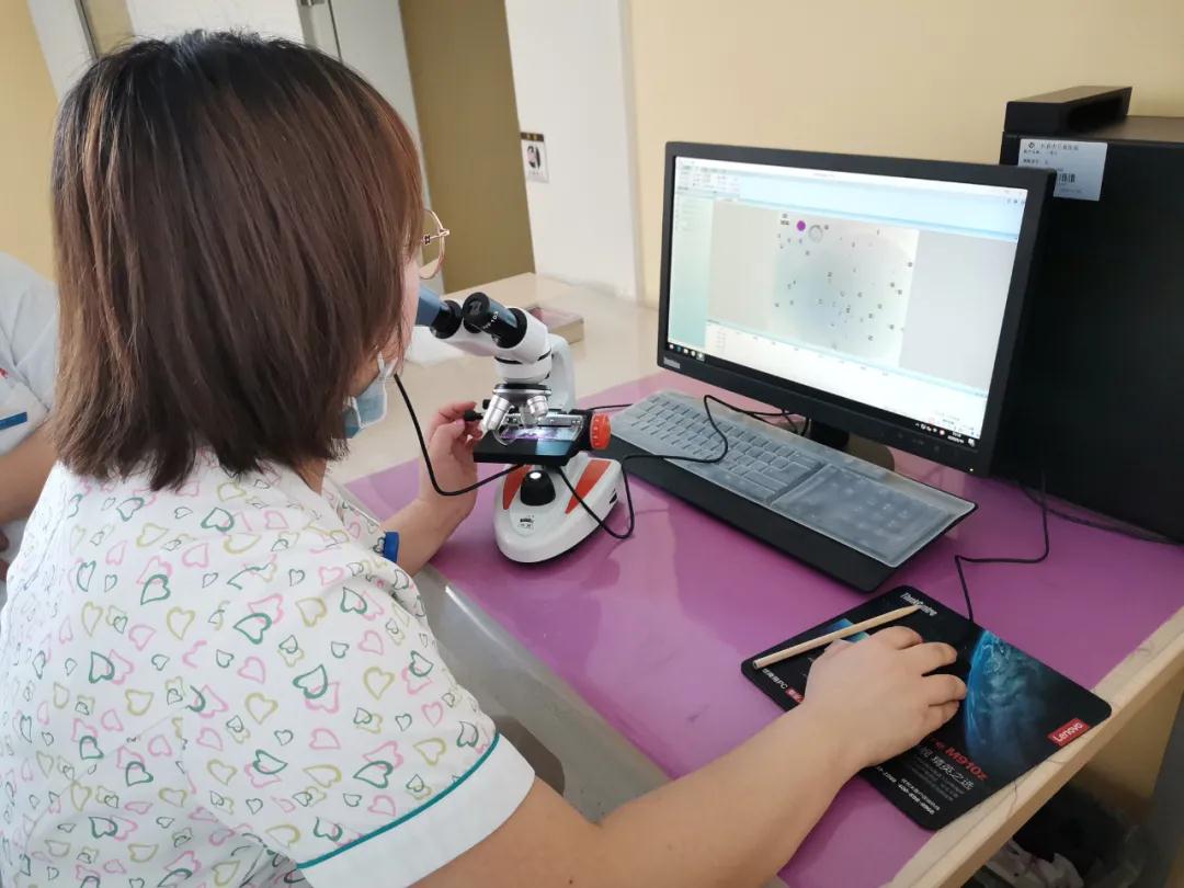 为区分花粉颗粒和灰尘,医生要在取回来的载玻片上要使用专用的染色剂,均匀涂于有凡士林的位置,并融化,为花粉染色。盖上盖玻片后,将载玻片置于显微镜下读取花粉颗粒的数量、种类。经计算,得到每千平方毫米的花粉数,即花粉浓度。