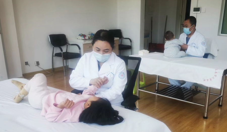 一种中医传统治疗方法,可以起到调整脏腑、疏通经络、行气活血、理筋整复的作用。推拿治疗还可以促进患儿关节活动,改善肢体畸形和关节的畸形,纠正异常姿势,促进正常的运动功能的发育。适用于各种原因引起的运动障碍如:小儿脑瘫、偏瘫、脑炎后遗症、脑外伤后遗症、运动发育迟缓、臂丛神经损伤、小儿肌性斜颈等