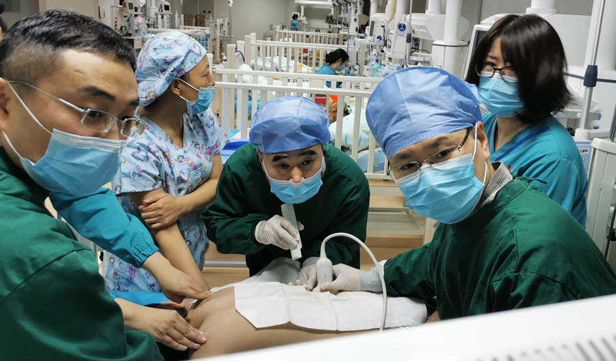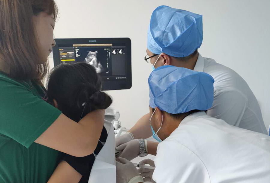 电诊科目前开展超声介入技术可包括:经皮胸、腹水穿刺引流,脓肿穿刺置管引流,心包积液闭式引流、肾积水、膀胱造瘘,肝组织穿刺活检,肾组织穿刺活检,肿瘤组织穿刺活检,淋巴结组织穿刺活检,浅表肿物穿刺活检。可满足各临床科室患儿诊断及治疗需要。