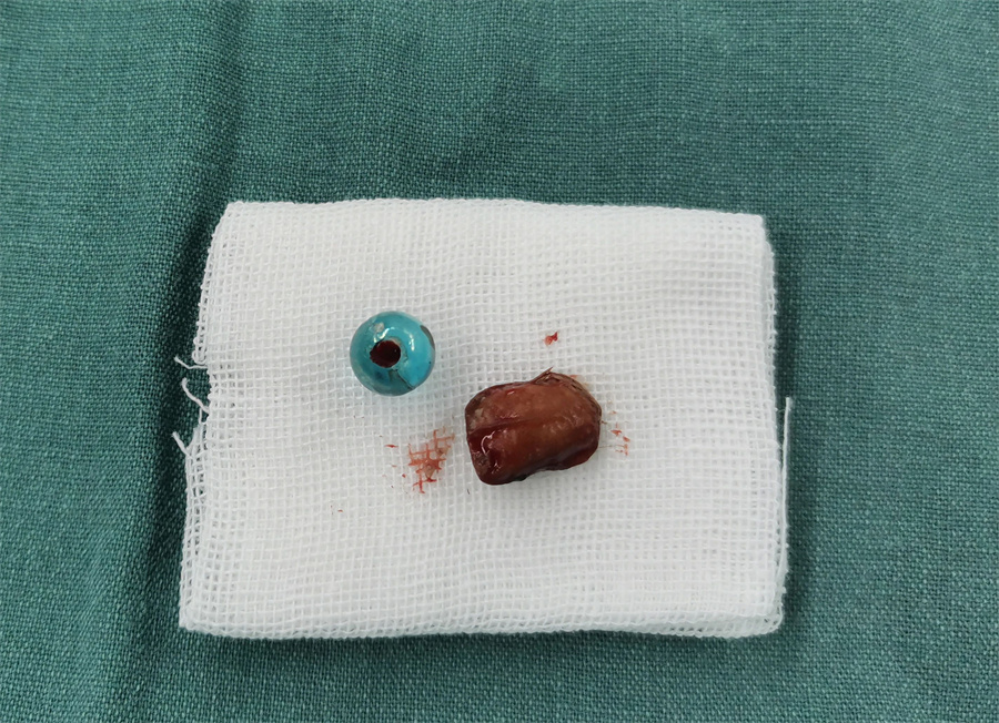 据耳鼻喉科主任李莉萍介绍,妙妙来医院时,距吸入小圆珠已达4小时之久。在各项检查结果显示符合手术条件的情况下,医生成功为她做了全麻异物取出手术。但是,就在医生术后全面检查鼻腔时,意外地发现在更深处还有一个白色异物!谁都不知道妙妙是什么时候、怎样把这个东西塞进鼻内的。好在医生经验丰富,顺利将白色异物成功取了出来。
