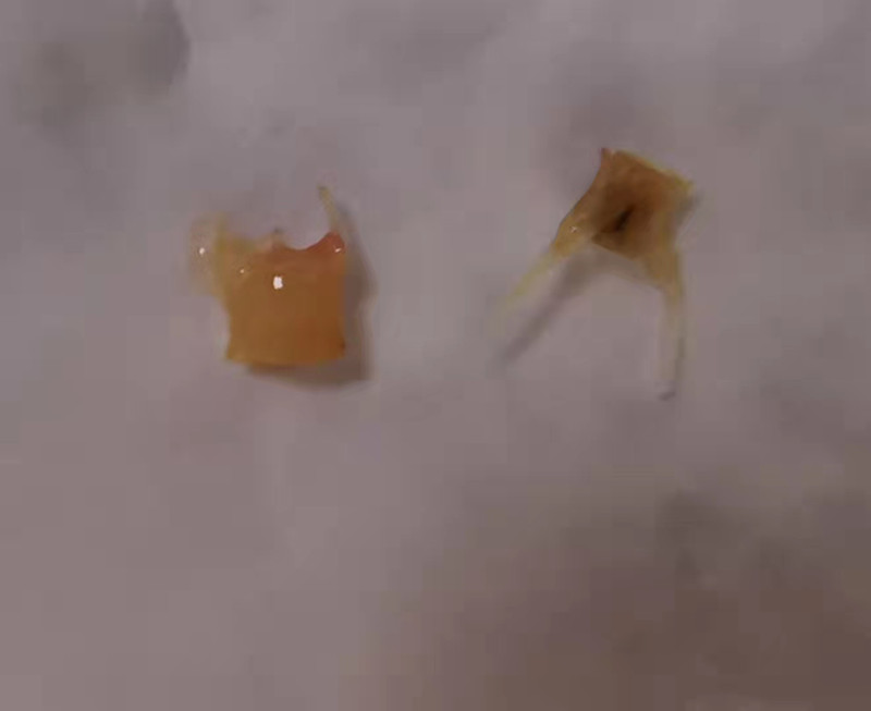 经三维重建,内镜下,边鹏从轩轩左肺主气道取出一块鱼肉。随着检查的深入,边鹏在轩轩左肺下叶亚段,又发现3块碎鱼骨,几乎占满整个左肺。