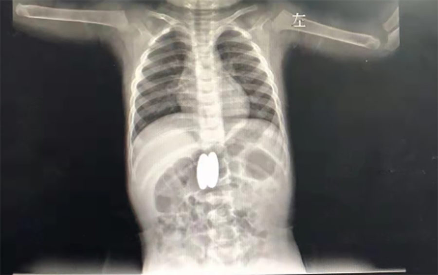 正月初八,2岁的壮壮(化名)感冒加重了,不断咳嗽,家人带他到当地医院就诊。在拍肺CT时,医生发现他的胃、肠里竟然有两个异物,而且两处异物竟吸在一起了。