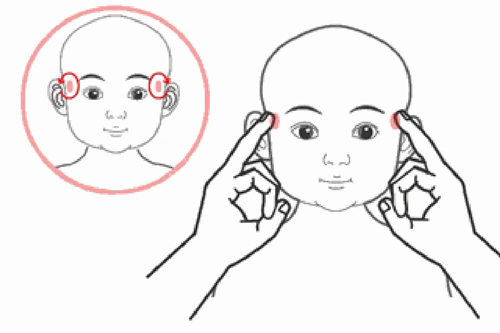 推坎宫:自眉心至眉梢成一条直线,用两拇指自眉心向两侧眉梢分推30-50次。