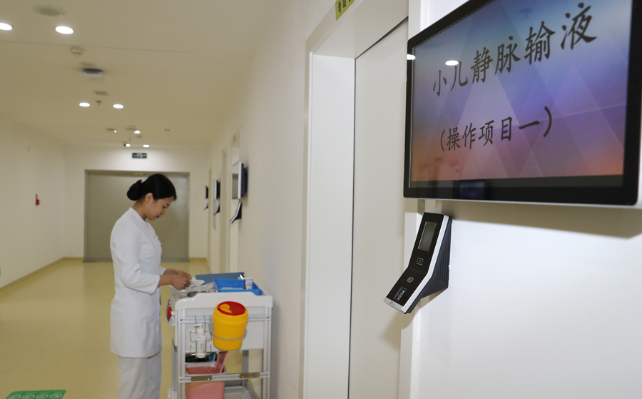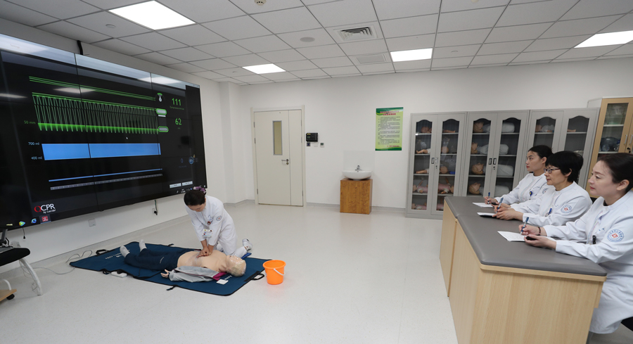 操作技能大赛决赛在医院临床技能操作中心的真实临床场景中进行,比赛项目分为静脉输液、心肺复苏两个赛道。静脉输液比赛在模拟病房考核,采用情景模拟形式,要求选手们按照预设情境执行病情评估、患者查对、健康指导等环节,比赛现场气氛紧张激烈,参赛选手精神饱满,操作流程熟练,动作规范、娴熟,在与“患儿”进行有效、亲切的沟通中,展现出护理人文关怀。心肺复苏采用仿真模拟人的方式,直观读取心肺复苏按压频率、深度及通气状况等相关数据。选手们有条不紊地完成各个操作环节,把“规范、稳准、快速”的技术表现得淋漓尽致,充分展现了儿医护理人良好的精神面貌与扎实的基本功底。本次比赛还增加了理论考试环节,考核内容涉及基础护理学、儿内科护理学、儿外科护理学、危急重症护理学、护理核心制度等相关内容。