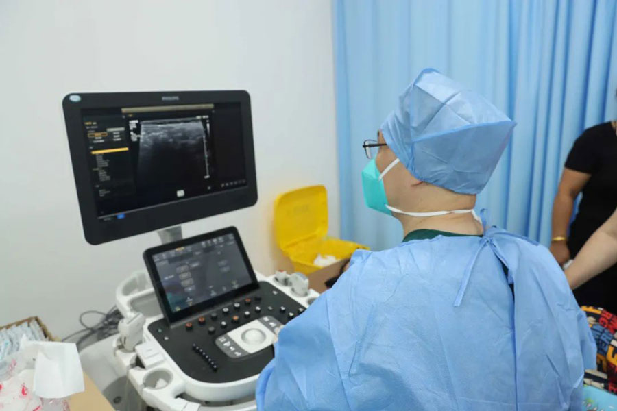 “姚主任,门诊楼下有个腹痛患者,需要做彩超。”一顶防护帽子,一个外科口罩,一件普通的白大衣,一台小型移动彩超仪器。