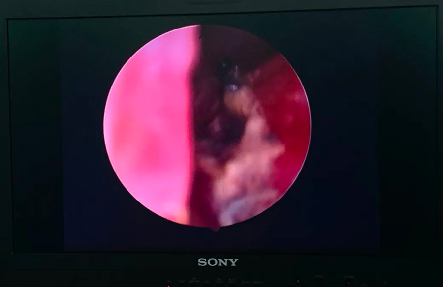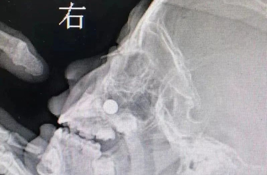 3月23日,120急救车将1名患儿送至德州扑克游戏网 。患儿3岁,来时明显看出鼻子不舒服。妈妈说,前一天儿子把纽扣电池塞右侧鼻子里了,但在当地医院没取出来。如果真的是纽扣电池,那就危险了,因为电池产生的腐蚀性物质及微电流会造成鼻腔黏膜腐蚀伤,甚至后期可能出现鼻中隔穿孔。门诊医生接诊后,未能看到鼻道中有明显异物,耳鼻喉科开放急危重症绿色通道。由于患儿及家长核酸结果未回报,耳鼻喉科医生在三级防护下做了鼻咽镜检查。在患儿下鼻道底部,发现有黏膜肿胀以及典型的纽扣电池异物放电导致的“冒泡”现象,但异物被肿胀的黏膜包裹,大小及形态显示不清。鼻咽部平片同样显示鼻腔底部有圆形金属异物。