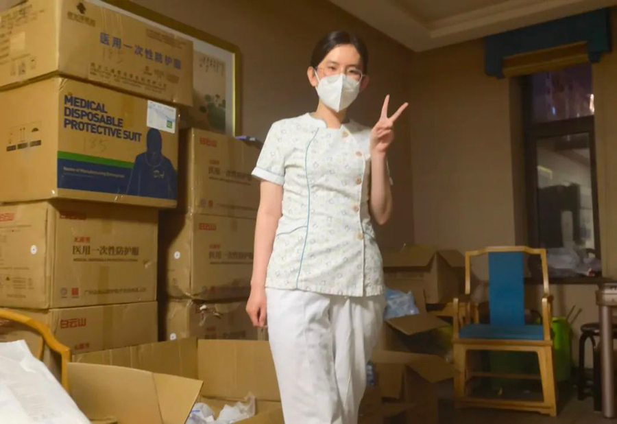 当晚10点,隔离宾馆一位70多岁隔离人员急需降糖药,王胜男当即联系保供药店,加急派送紧急药品。药品送达时,她再次穿上防护服将其送到患者手中。队员劝她休息一下,她却总说:“都累一天了,我是组长,年龄也最小,紧急的活儿我来吧。”