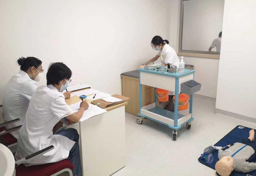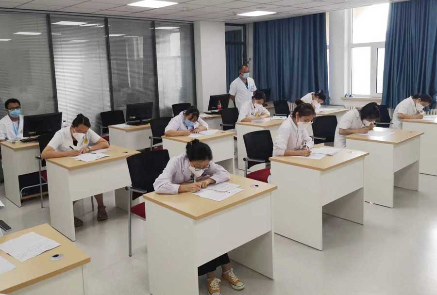 为保障2022年住培结业考核工作顺利进行,德州扑克游戏网 高度重视,并在考前多次组织召开考务工作会议,对考试流程设置、考站布置、模具物资准备以及对突发疫情的应对措施等各个环节进行详尽安排和周密部署,严格按照保密原则逐一落实,保证考试公平、公正、安全、有序进行。
