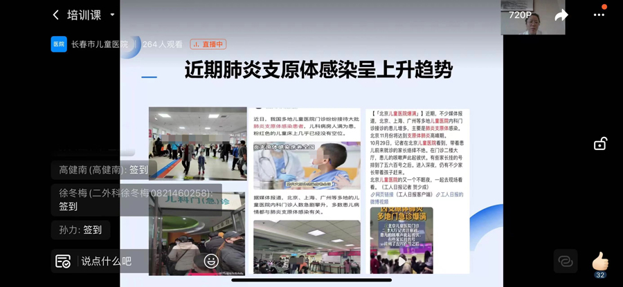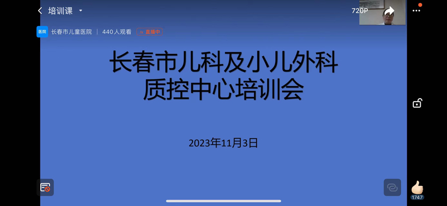 按照长春市卫健委《关于举办长春市2023年儿科及小儿外科、新生儿科质控中心培训的通知》要求,11月3日,长春市儿科及小儿外科质控中心主任黄艳智、长春市新生儿科质控中心专家牟婷为长春地区儿科相关从业人员进行培训,分别解读了《儿童肺炎支原体肺炎诊疗指南(2023版)》和《早产儿代谢性骨病》。