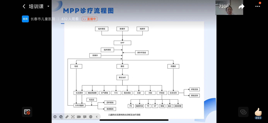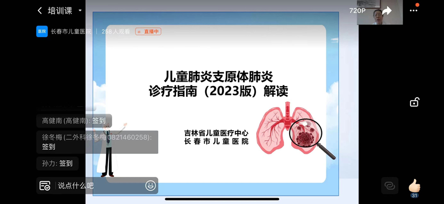 “肺炎支原体肺炎是儿童常见的社区获得性肺炎,多发于秋冬季,其他季节均有散发病例……”黄艳智详细解读了《儿童肺炎支原体肺炎诊疗指南(2023版)》。同时,从肺炎支原体肺炎的发病现状、流行时间、发病机制、病理表现、临床表现、影像学表现、支气管镜下表现、诊断、支原体抗体检查结果解读、支原体肺炎的临床分型、重症和危重症的早期预警指标、鉴别诊断、治疗原则等方面给予了科学具体的指导。通过此次培训,进一步提高发长春地区儿科医疗机构从业人员关于儿童肺炎支原体肺炎诊疗规范化水平,从而保障医疗质量的安全。