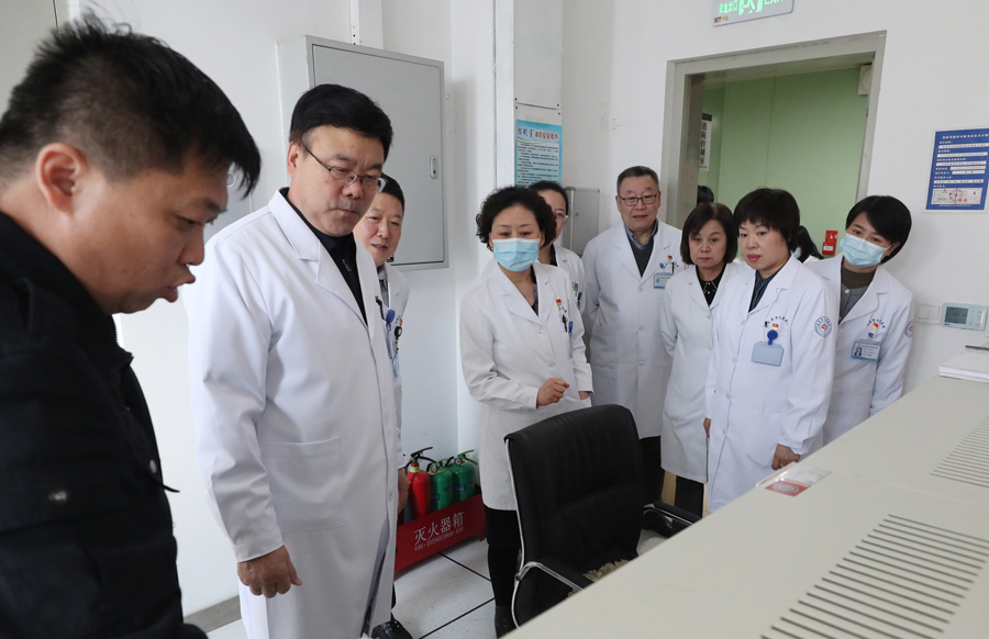 会后,院领导班子成员一行分别来到配电室、食堂、监控室、消防控制室、静点中心、心理门诊等重点部位进行实地检查。在检查过程中,张瑞忠书记详细询问了各设备设施的使用情况、安全生产规章制度的执行情况,着重检查燃气及电器安全,叮嘱在岗人员要时刻紧绷安全生产这根弦,任何时候都不能有麻痹大意的思想和侥幸心理,要把院内各项安全举措做深做实。