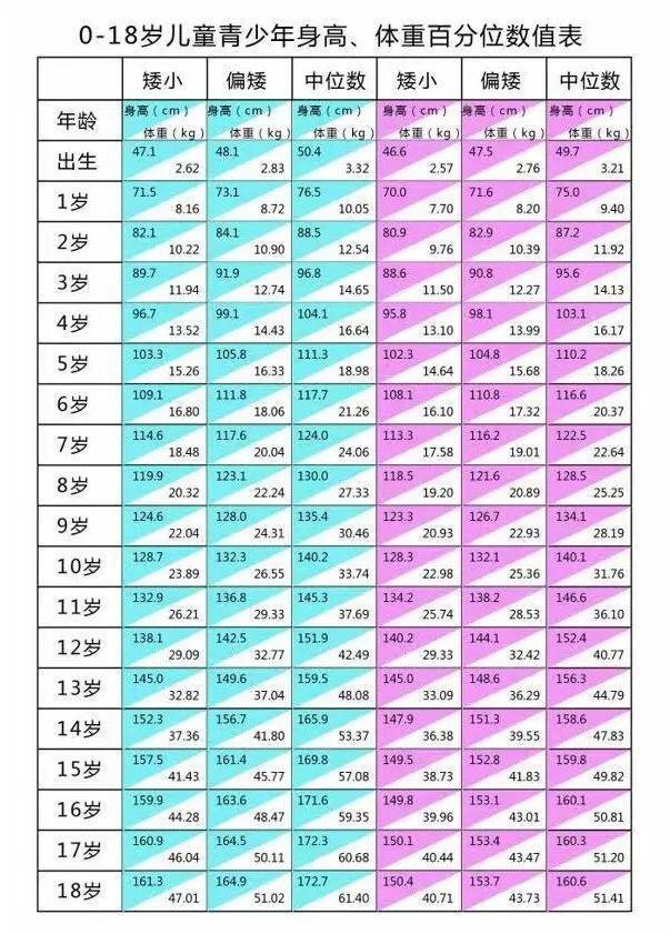 家长可以通过比对儿童身高体重百分位数值表(年龄为周岁),定期监测孩子的身高。如果孩子年龄对应的身高在矮小上,则需要进一步检查,明确原因。