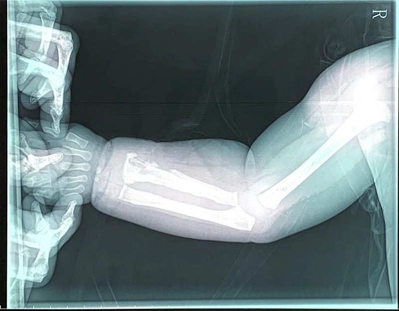 小宇一周前发过烧,后来胳膊肿了。小宇妈妈说,原以为孩子只是普通感冒,打针后烧退了,但胳膊一直不见好转。这种情况,医生怀疑是急性骨髓炎。拍片显示,其桡骨骨质改变,结合核磁检查结果,医生综合分析,明确是急性骨髓炎。由于已错过发病初期48小时最佳治疗期,不能保守治疗,医生建议马上手术。随后,副主任医师高凤奇为小宇手术,局部切开、病灶清除、开窗减压、置管冲洗引流,术后又进行抗感染治疗。2周后,小宇症状改善,无肿痛、无化脓液,基本痊愈。