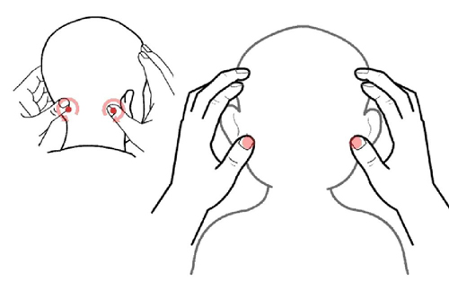 按揉耳后高骨:位于枕骨下,当胸锁乳突肌与斜方肌上端之间凹陷处,用拇指或中指端揉该穴,揉30-50次。