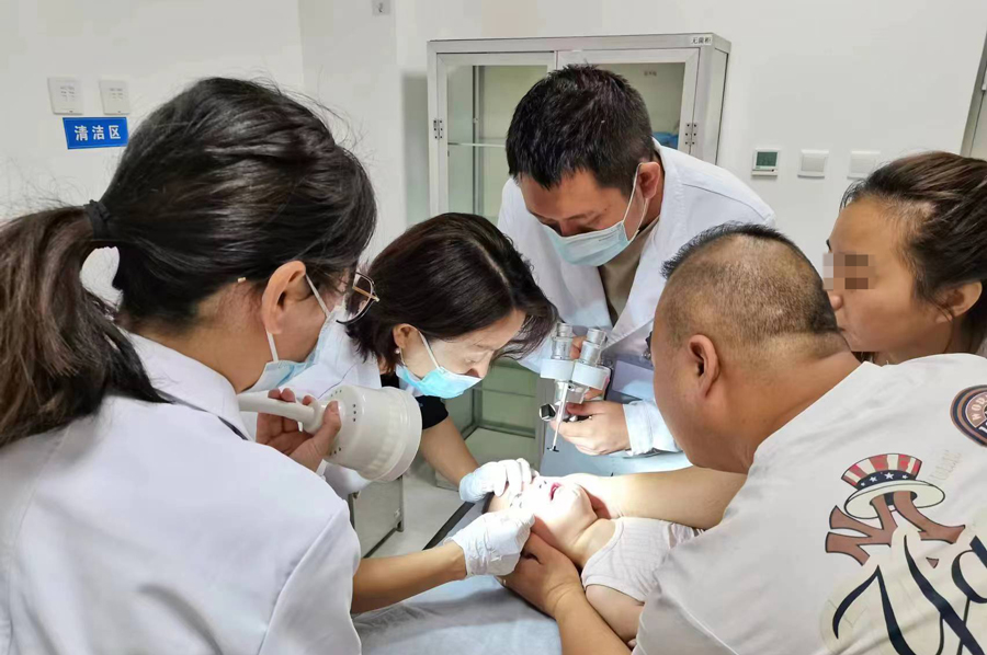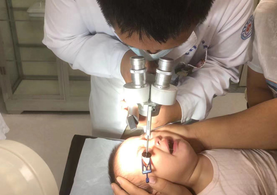 病例分析:不久前,延边地区2岁的童童(化名)突然出现右眼红、流泪、畏光等症状,家长观察2天,右眼不但红还开始肿起来了,这才着急了,赶紧带童童去看医生。家长本以为是简单的治疗,却不想开始了漫长的求医路。家长带童童辗转延边和长春10余家医院,都因为孩子眼部疼痛,哭闹得厉害,不能配合检查。医生无奈,只能按照结膜炎给童童用抗生素眼药水及润眼药物点眼。但各种用药持续了近1个月,童童的病情不但没有缓解,反而逐渐加重,出现右眼肿胀,无法睁眼状态。家长焦急万分,抱着最后的希望,9月11日,家人带童童来到德州扑克游戏网 。在眼科门诊,童童仍然特别抗拒医生,眼科副主任李娅娜接诊后不慌不忙,还安抚家长道:“我们儿童医院每天都面临不同的孩子,孩子和成人不一样,生病的时候会更害怕,紧张、易怒、不配合检查,别着急,慢慢来。等孩子情绪稳定,我们能准确检查了,才能对疾病做出正确判断,给出正确的用药。”李娅娜副主任一边微笑着和童童互动,一边和家长仔细了解近1个月就诊情况,评估病情。一会儿,孩子的情绪终于慢慢放松下来,也不再恐惧,答应配合医生的检查。医生使用儿童型开睑器,轻柔地撑开童童的眼睑,快速、准确地进行充分检查。在手持裂隙灯下,医生发现童童右眼角膜有一个溃疡灶,溃疡深度达0.3mm以上,面积较大,波及1/3角膜,部分位于瞳孔区,如果不及时控制病情,很可能会影响视力,严重了还可能造成角膜穿孔,导致失明。听了医生的病情分析,家长担心极了,但也很庆幸来到这里,终于明确了孩子病情。
